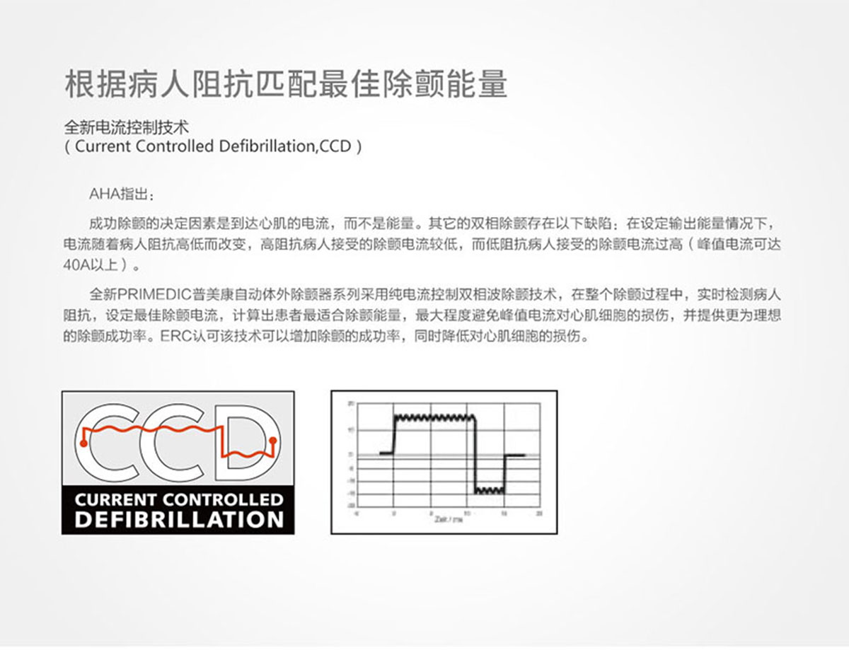 (1)除颤技术:运用最新的电流控制除颤技术(CCD),直线双向方波,真正做到了实时检测患者阻抗,智能调整除颤能量,有效提高首次除颤成功率,使达到患者心肌的电流有效、安全,并最大程度减少对患者的心肌损伤。